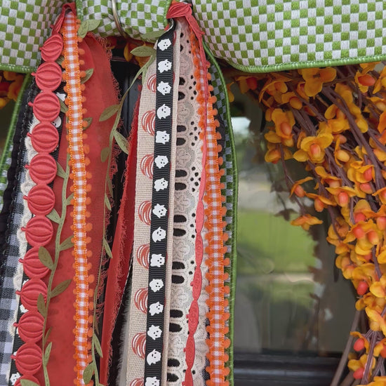 Celebrate the season with the Green Gingham Harvest Wreath, a handcrafted piece designed to bring cozy Fall charm to your front porch or entryway.