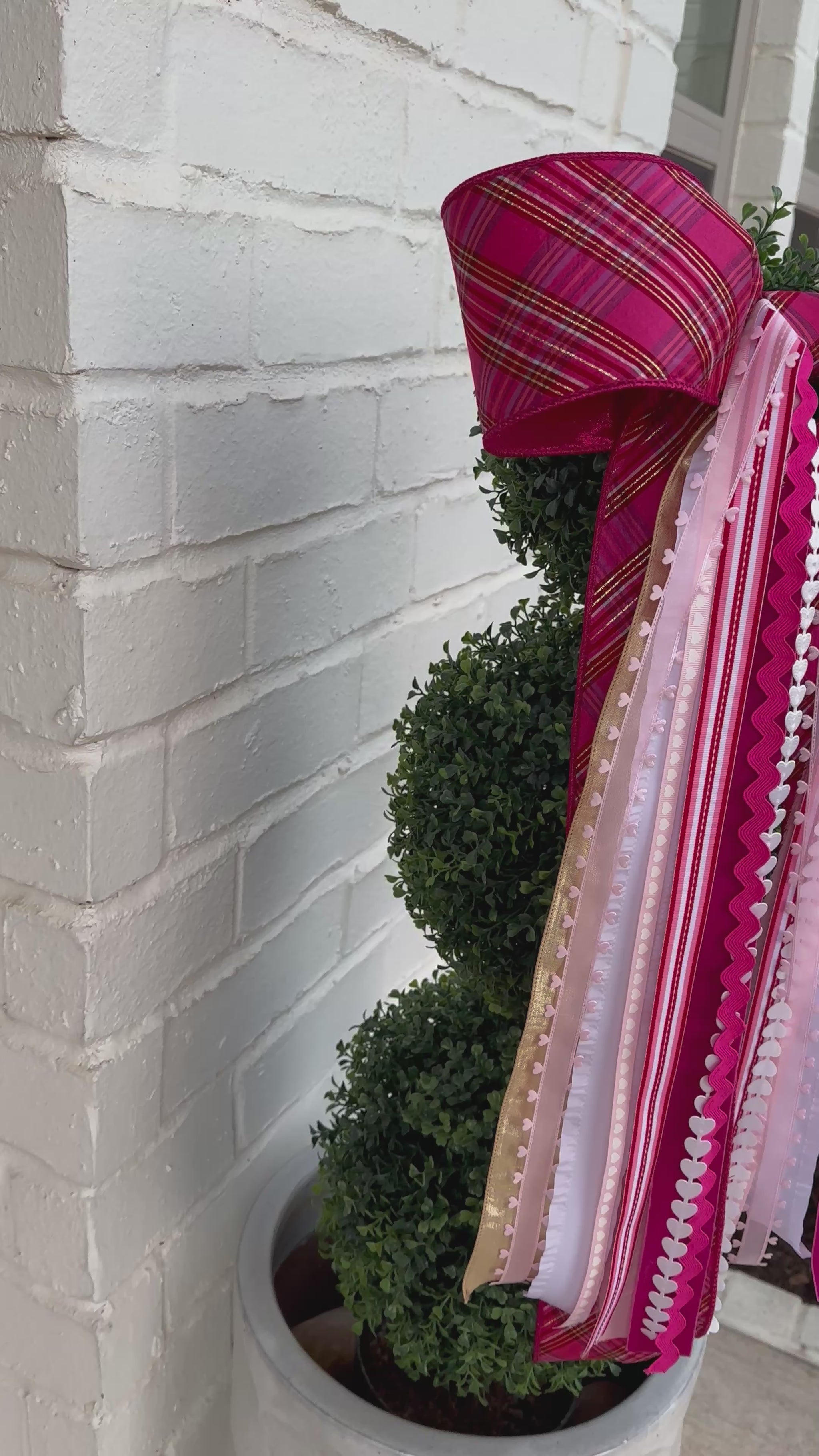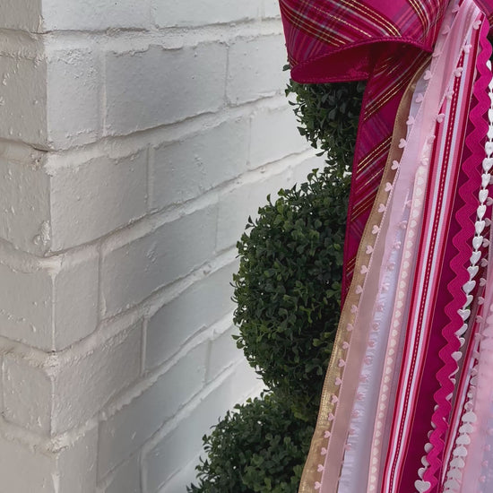 - The Pink Plaid Valentine BowBin features a Stunning Pink Plaid Ribbon layered with coordinating pink, white, and gold accent ribbons, creating a gorgeous Valentine look for doors, wreaths, and seasonal home decor. BowBins can be hung with or without a wreath.