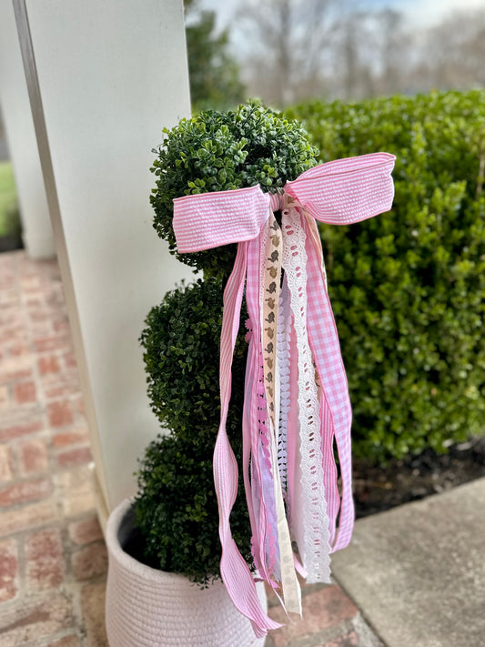 PINK SEERSUCKER BUNNY BOWBIN